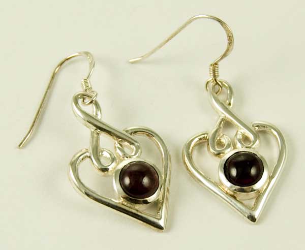Earring Heart Garnet Stone 37mm 925 Sterling Silver