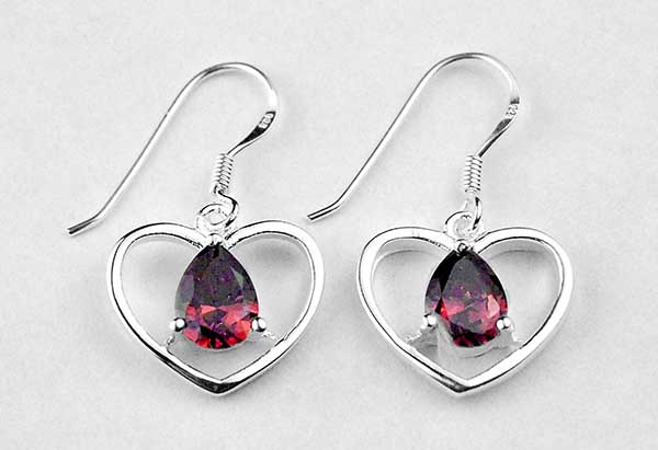 Earring Heart With Red Faceted Stone Earring Dimensions Are H2.5XW1.6cm 925 Sterling Silver