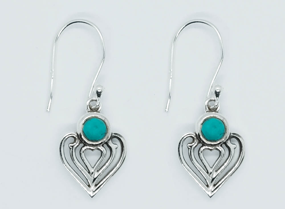 Silver Earring Heart Turquoise Round Cab 4x4mm