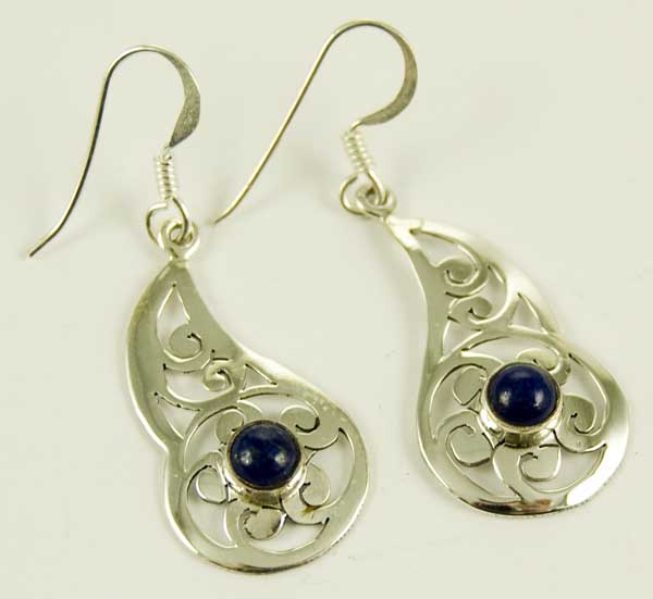 Earring Lapis Cabochon Circle Stone Jali Style L4cm From The Top Of The Hook 925 Sterling Silver