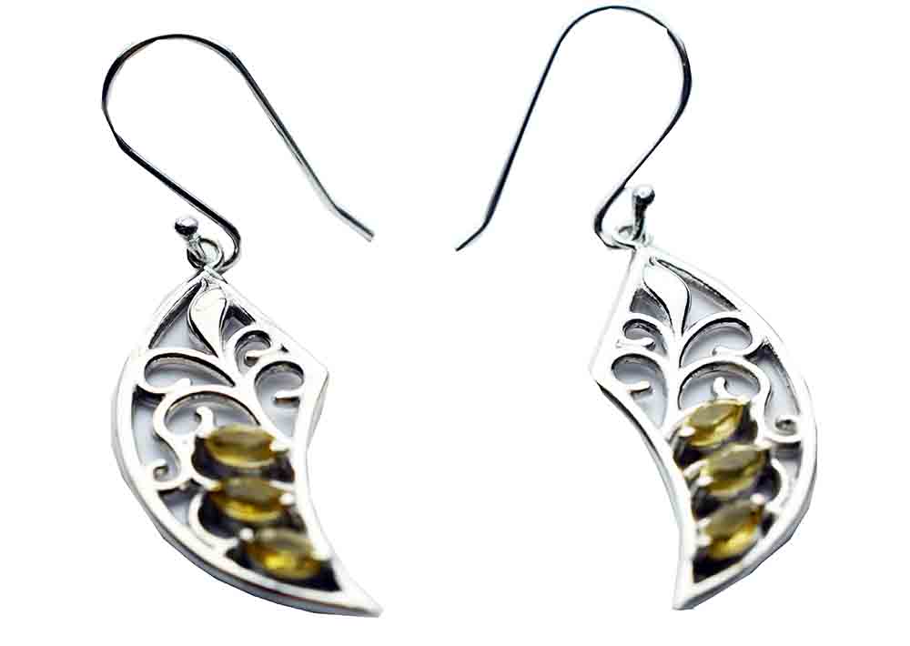 Earring Leaf Style Hanging With Three Citrine Stones 925 Sterling Silver