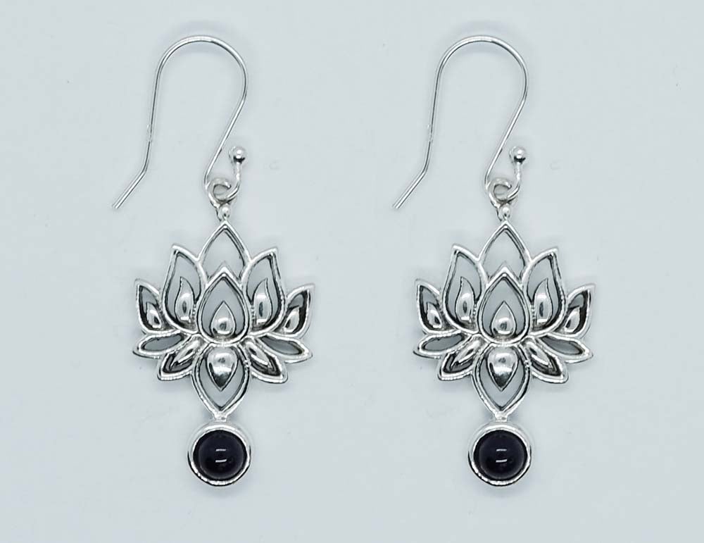 Silver Earring Amethyst Lotus Cabochon 4x4mm