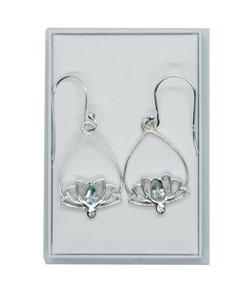 Silver Earing Lotus Cut Blue Topaz