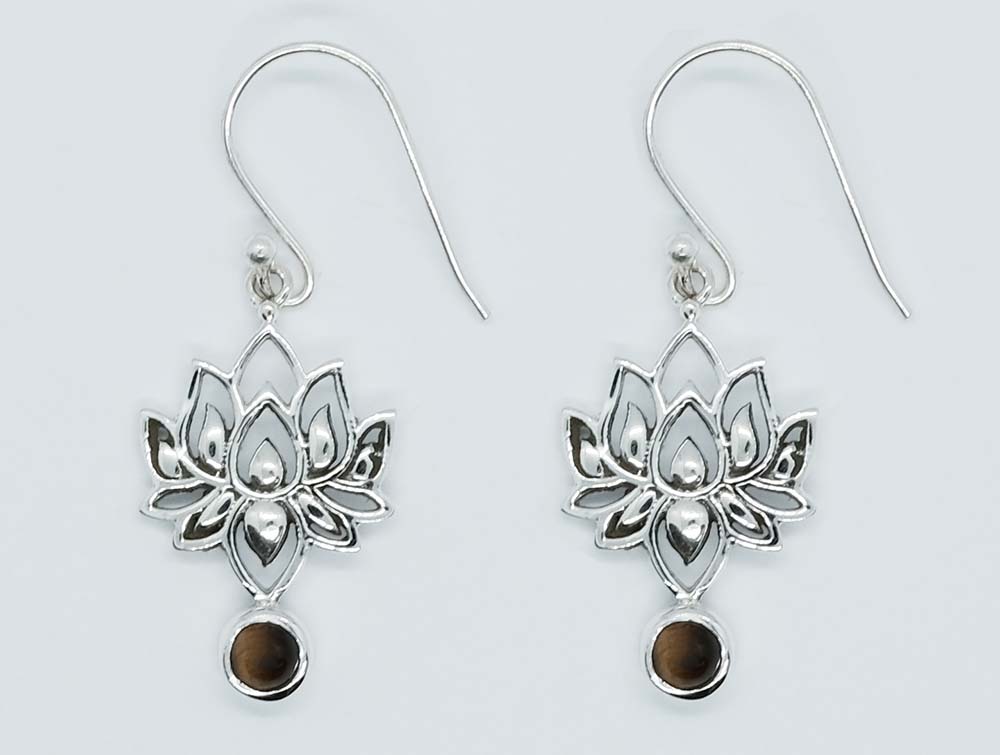 Silver Earring Tiger Eye Lotus Cabochon 4x4mm