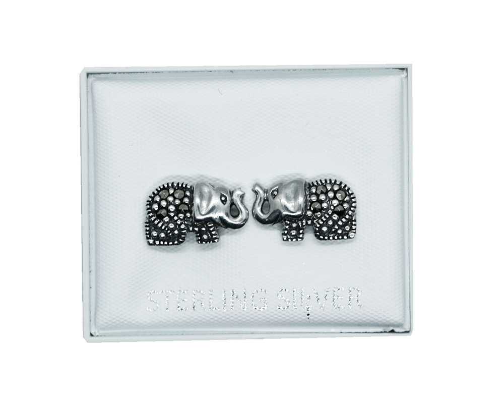 Earring Marcasite Elephant Stud 925 Sterling Silver