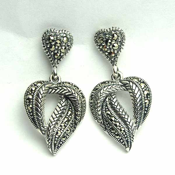 Earring Marcasite Heart Style Drop L2.5cm 925 Sterling Silver