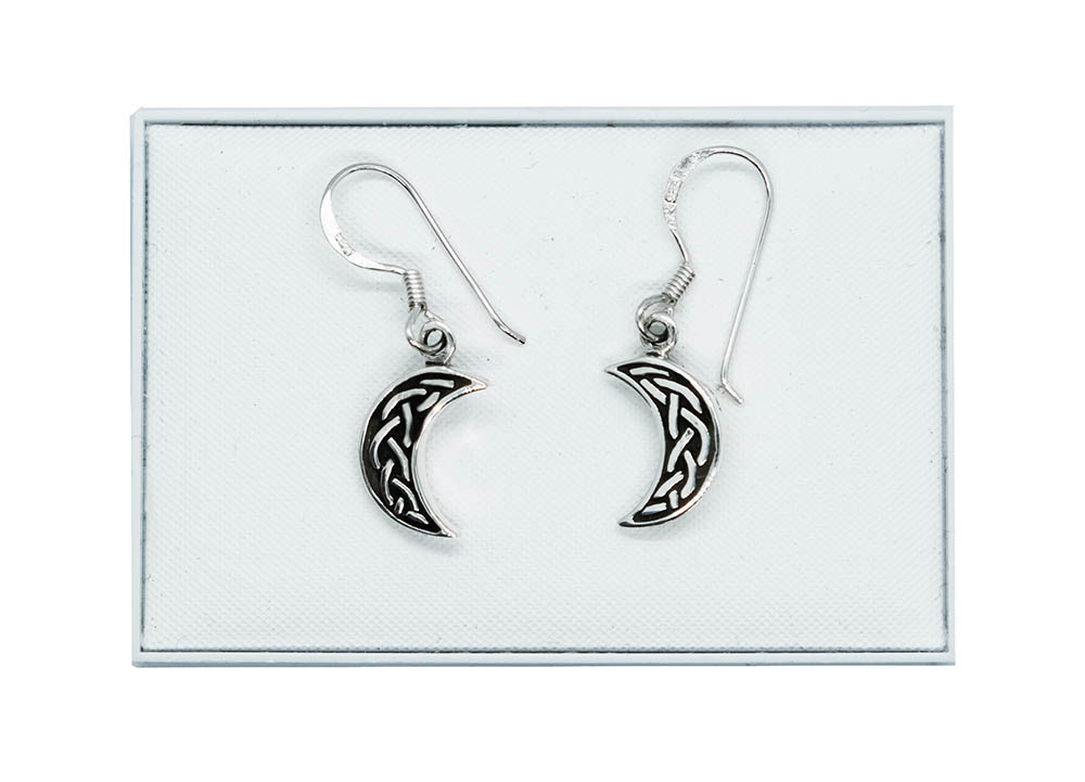 Earring Small Moon With Celtic Design Size From The Top Is L1cm 925 Sterling Silver
