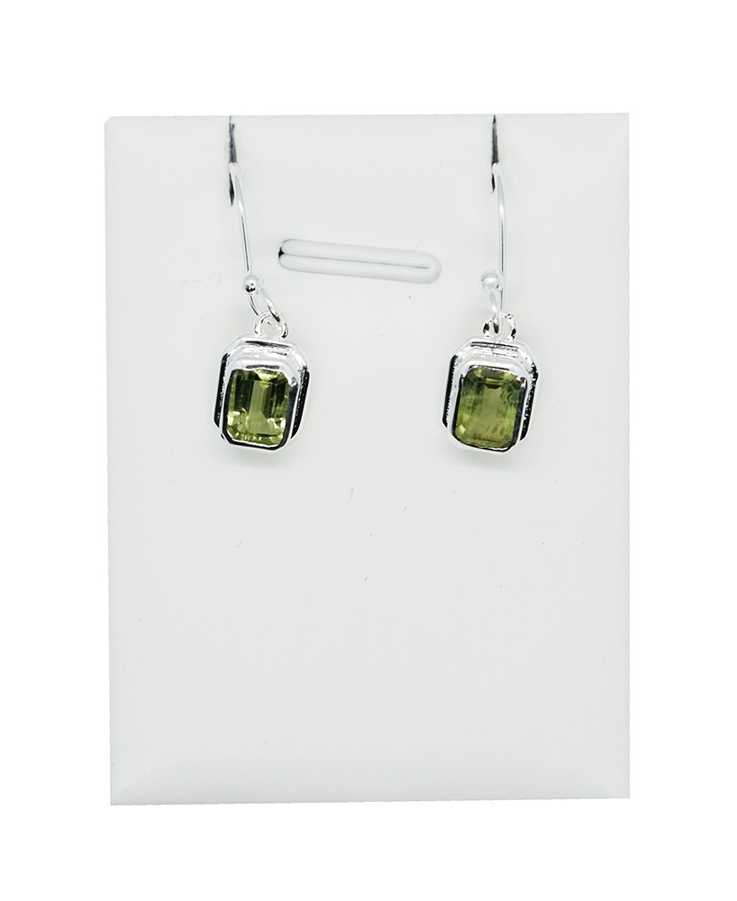 Silver Earring With Octagon Cut Peridot Stone 925 Sterling Silver