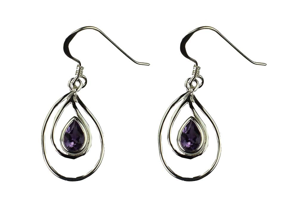 Earring Oval Drop With Amethyst Stone 925 Sterling Silver