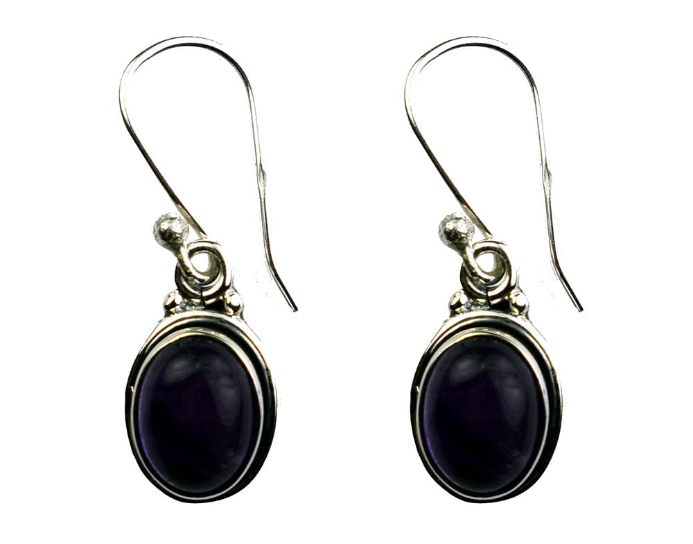 Earring Oval Hanging With Amethyst Stone 925 Sterling Silver