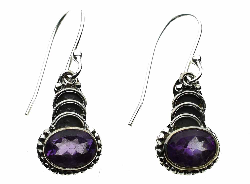 Earring Fancy Bobble Drop With Oval Amethyst Cut Stone L3cm 925 Sterling Silver