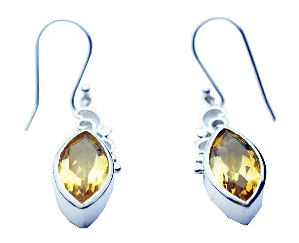 Earring Oval Style Hanging Stone Citrine With Floral Design 925 Sterling Silver