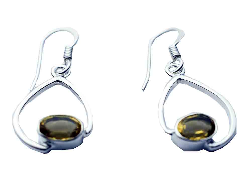 Earring Oval Hanging Loop With Citrine Stone 925 Sterling Silver