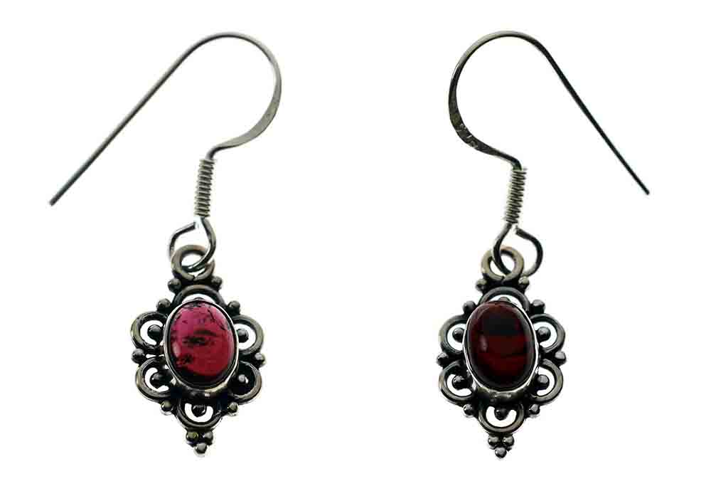 Earring Garnet Stone Drop With Filigree Details Around the Edges 925 Sterling Silver
