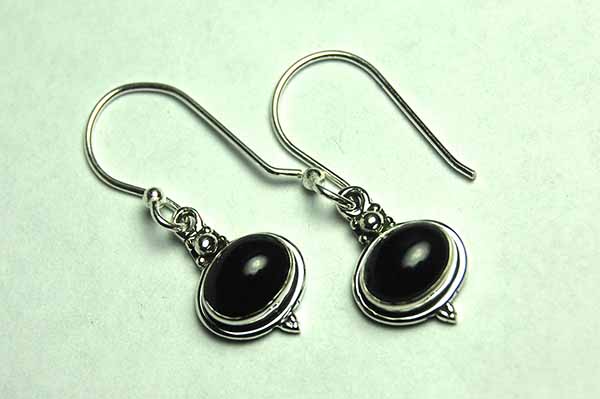 Earring Oval Drop Plain Garnet Stone L2.3cm 925 Sterling Silver