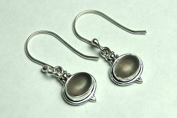 Earring Oval Drop Plain Rose Quartz Stone L2.3cm 925 Sterling Silver