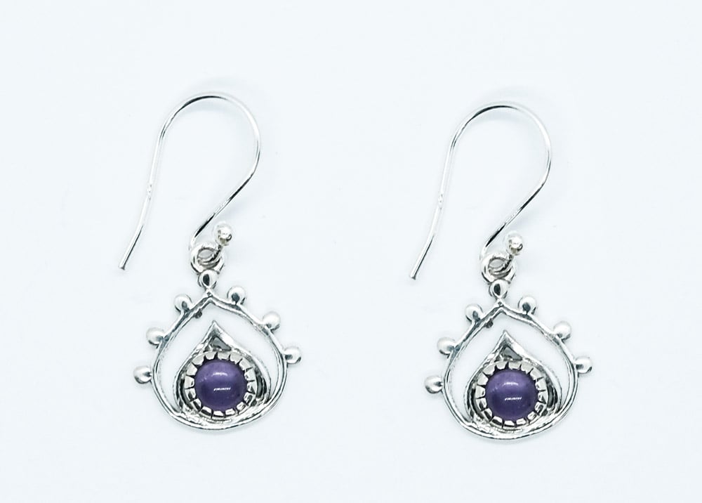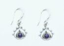 Silver Earring Pear Shape Central Motif With Amethyst 3cm