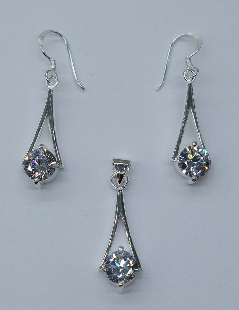 Silver Earring /Pendant Set With a Drop Round Clear Stone