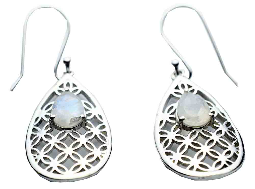 Earring Tear Drop Hanging With Criss Cross Design And Rainbow Stone 925 Sterling Silver