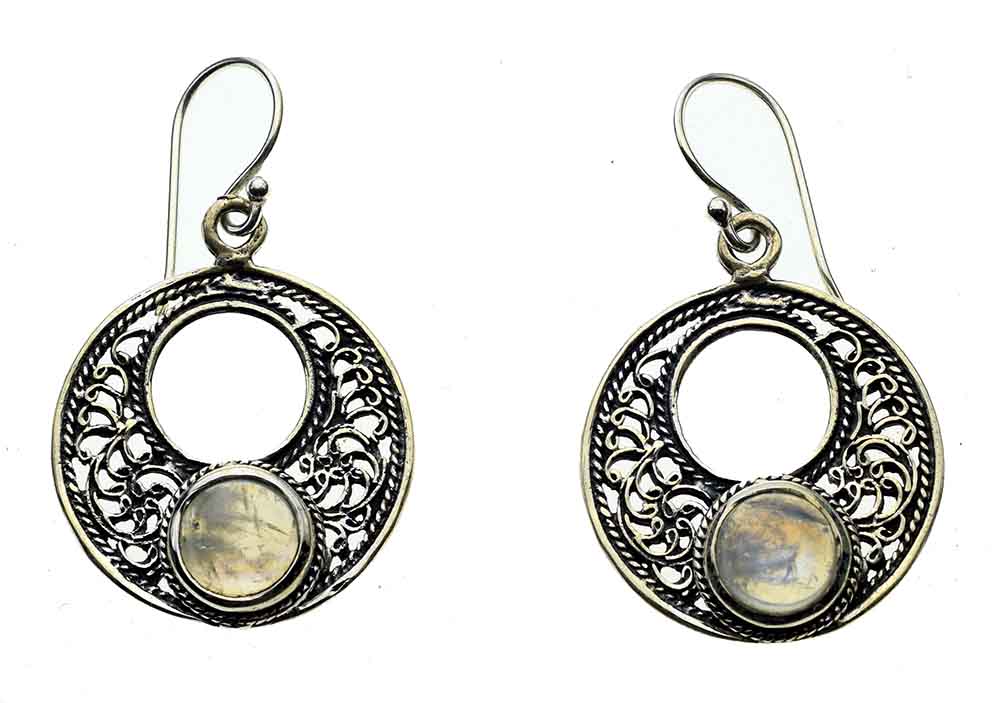 Earring Circle Patterned Design With Rainbow Stone 925 Sterling Silver