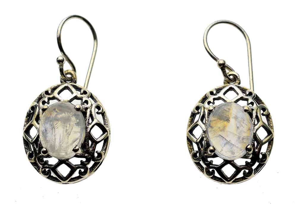 Earring Circle Cut Design With Rainbow Stone 925 Sterling Silver