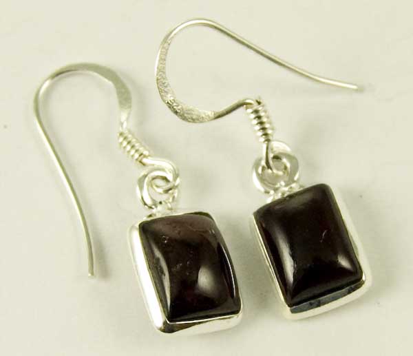 Earring Rectangle Plain Garnet Stone Length From Top Of Hook 2.5cm 925 Sterling Silver