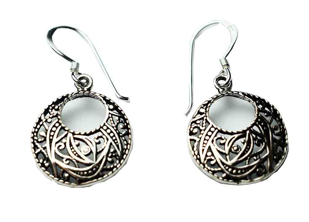 Earring Round Filigree 925 Sterling Silver 2cm