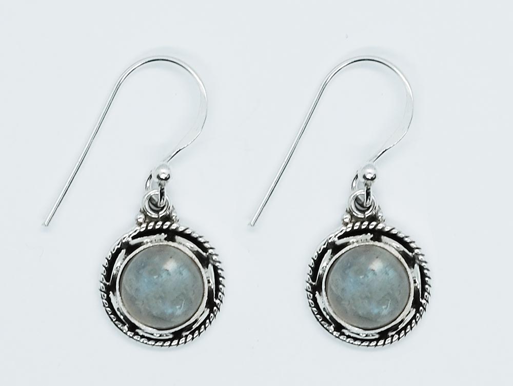 Silver Earring Rainbow Round Cabochon 8x8mm