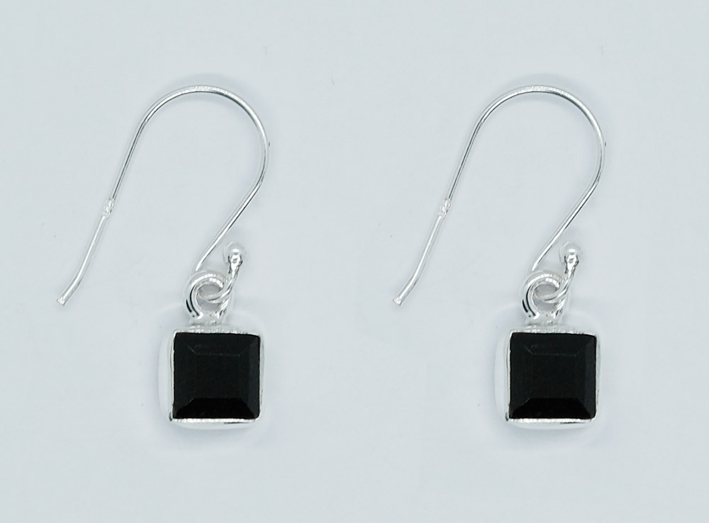 Silver Earring Square Cut Black Onyx 6x6mm