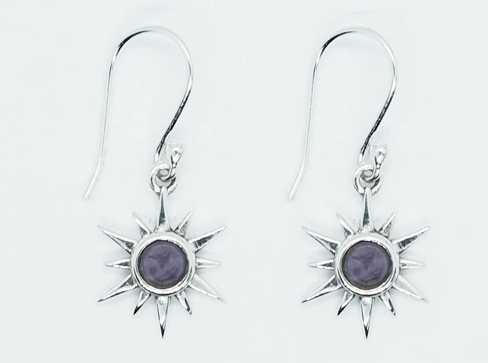 Silver Earring Star Amethyst Round Cabochon 4x4mm