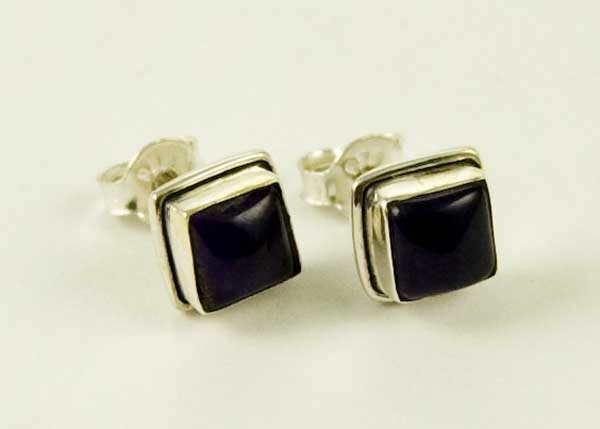 Earring Stud Square Plain Amethyst Stone W0.7cm 925 Sterling Silver