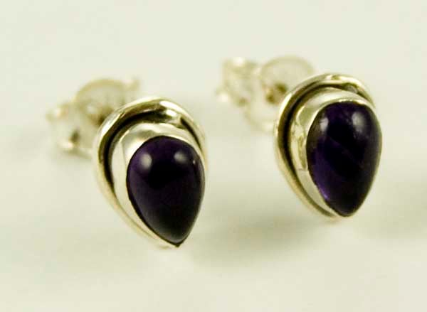 Earring Stud Tear Drop Plain Amethyst Stone L1cm 925 Sterling Silver