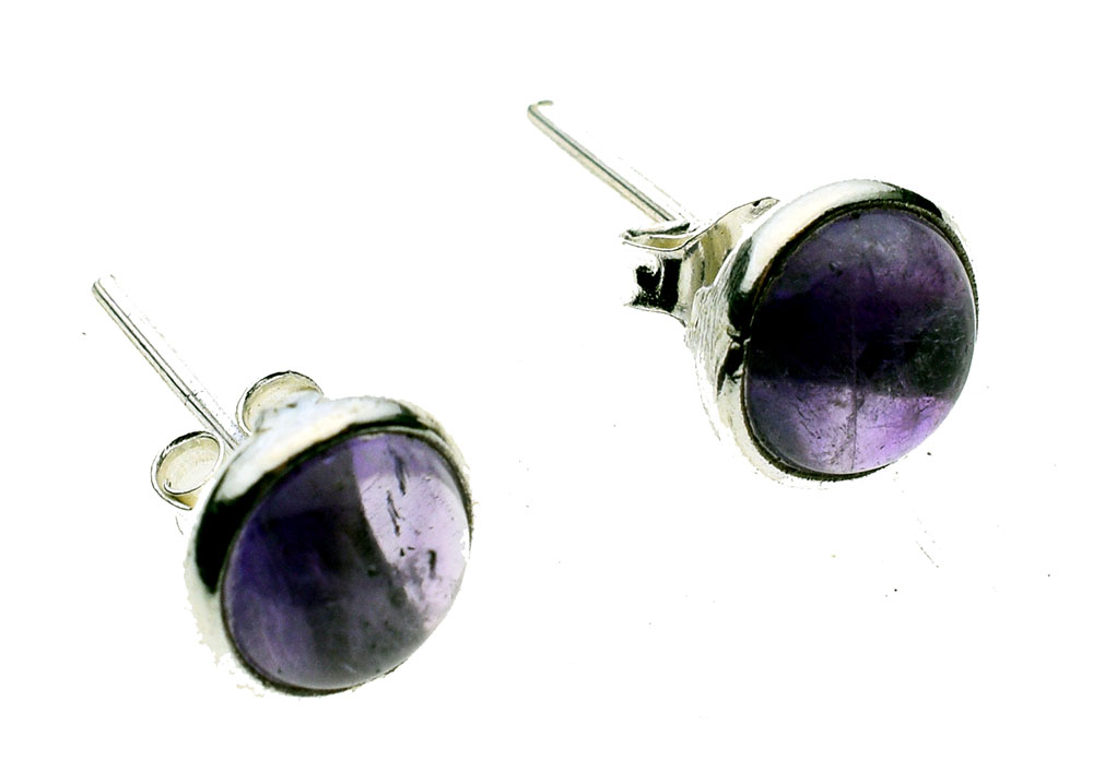 Earring Stud Round Amethyst Stone 925 Sterling Silver