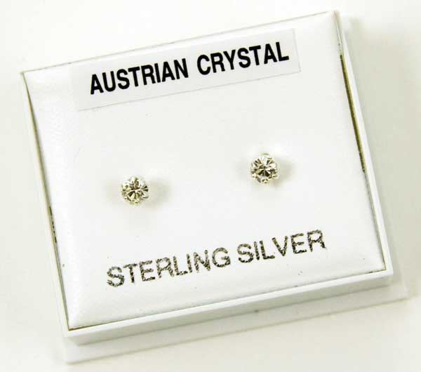 Earring Stud Clear Claw Set Austrian Crystal Stone W3mm 925 Sterling Silver