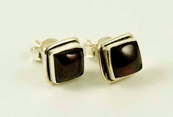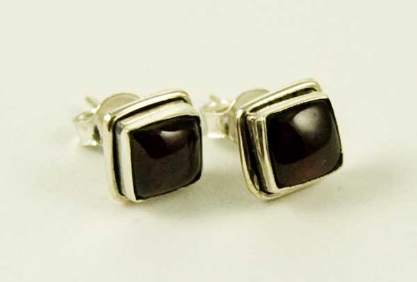Earring Stud Square Plain Garnet Stone W0.7cm 925 Sterling Silver