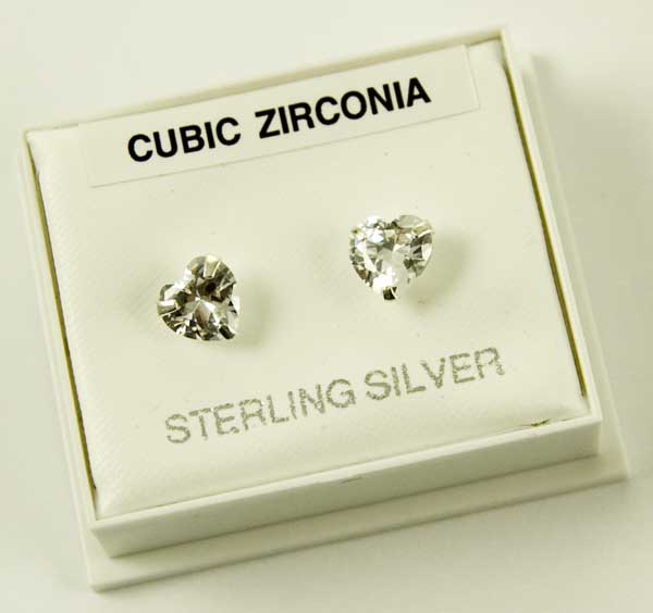 Earring Stud Heart Clear Claw Set Stone W5mm 925 Sterling Silver
