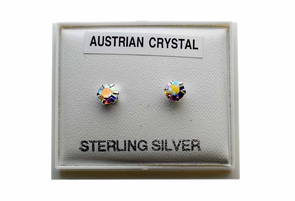 Earring Stud Rainbow Claw Set Austrian Crystal Stone 4mm Sterling Silver