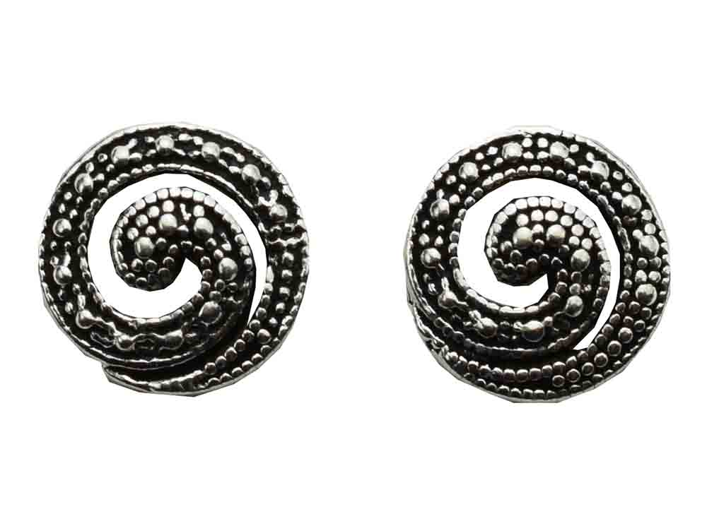 Earring Stud Circle Swirl With Bobble Design W1cm 925 Sterling Silver