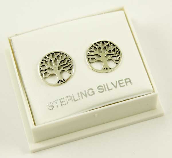 Earring Stud Tree Of Life W1cm 925 Sterling Silver