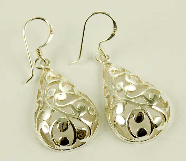 Earring Tear Drop Floral Cut Design L4cm 925 Sterling Silver