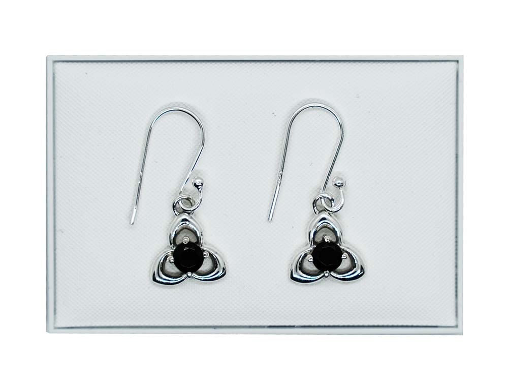 Silver Earring Triquatra Onyx 925 Sterling Silver, Approx. 23.5 x 10mm