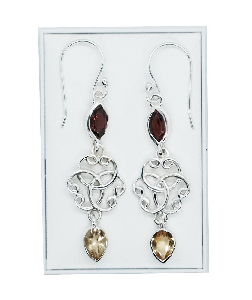 Silver Earing Triquetra Design With Marquise Cut Labradorite And Pear Cut Citrine Stones