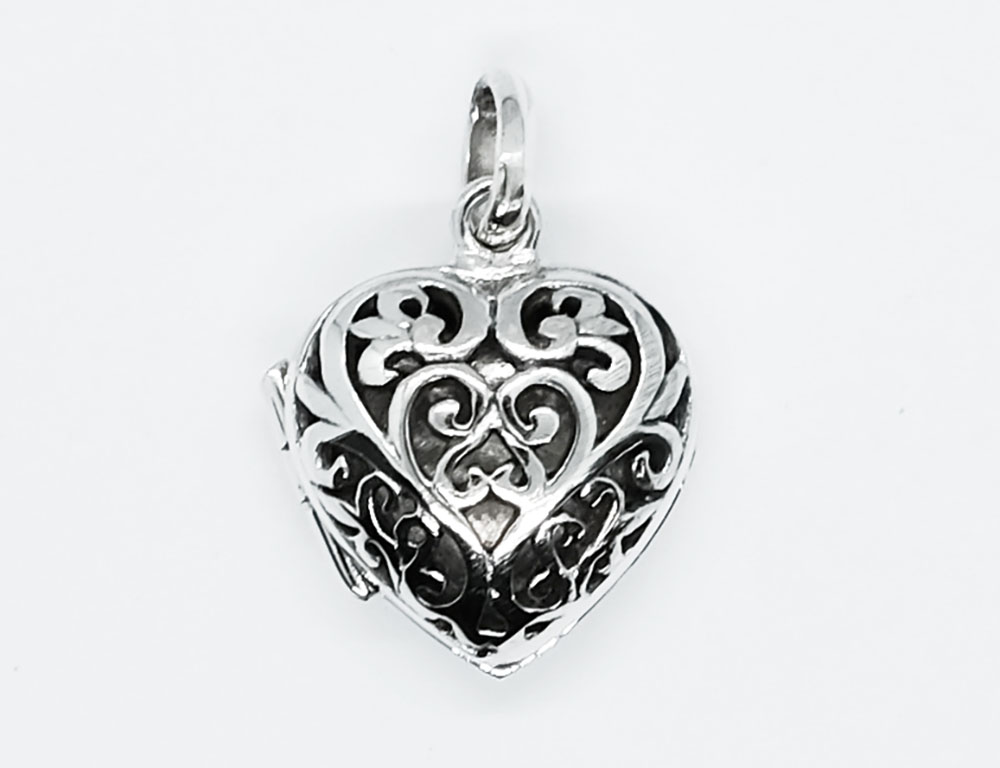 Pendant Locket Heart Filigree L1.5cm 925 Sterling Silver