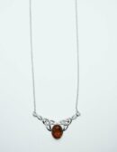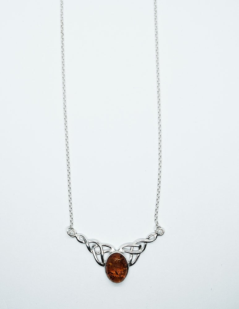 Silver Necklace Amber Celtic Design With Oval Stone Adaptable From 16 To 18 Inch