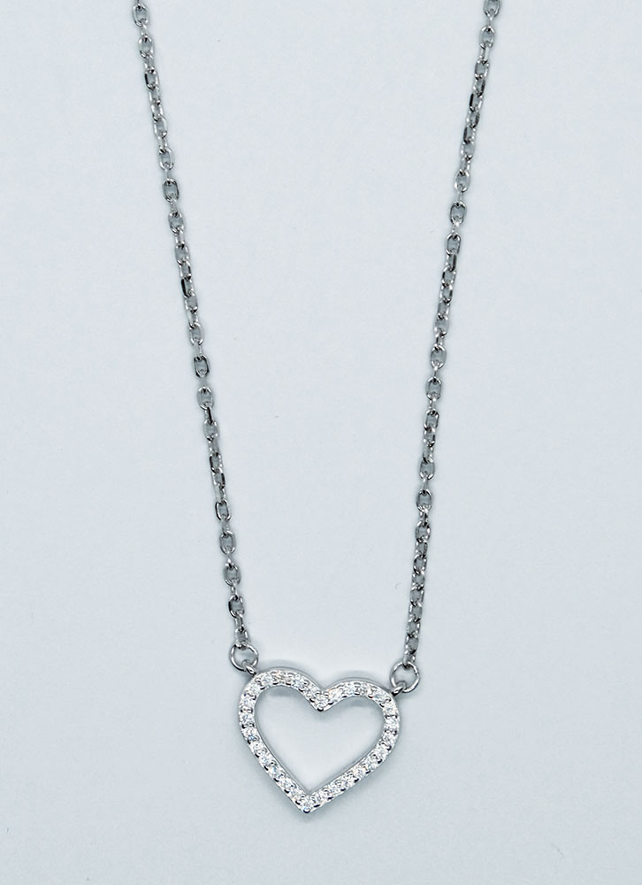 Silver Necklace Heart Cubic Zirconia