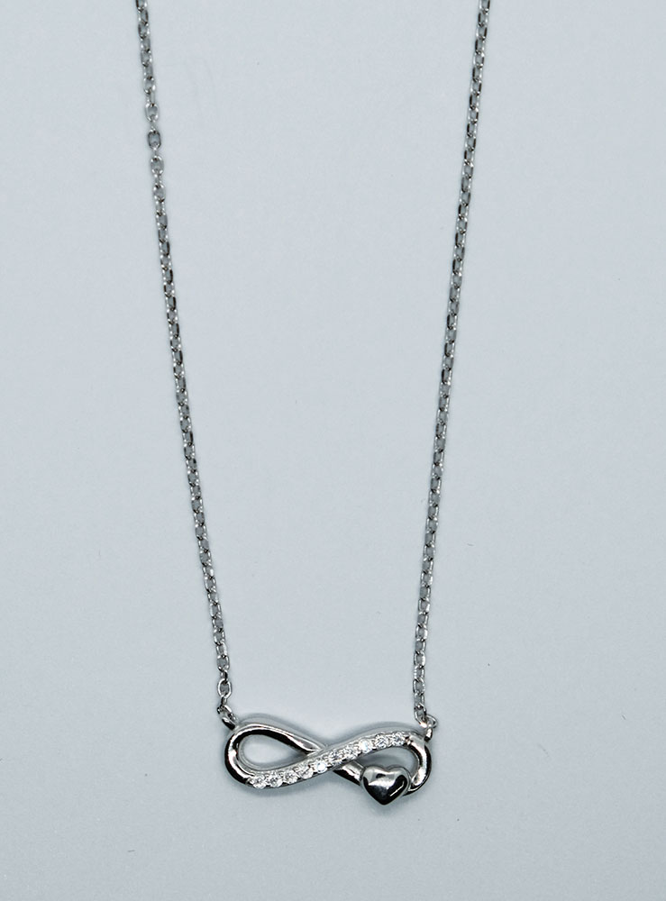 Silver Necklace Inifnity With Heart Cubic Zirconia