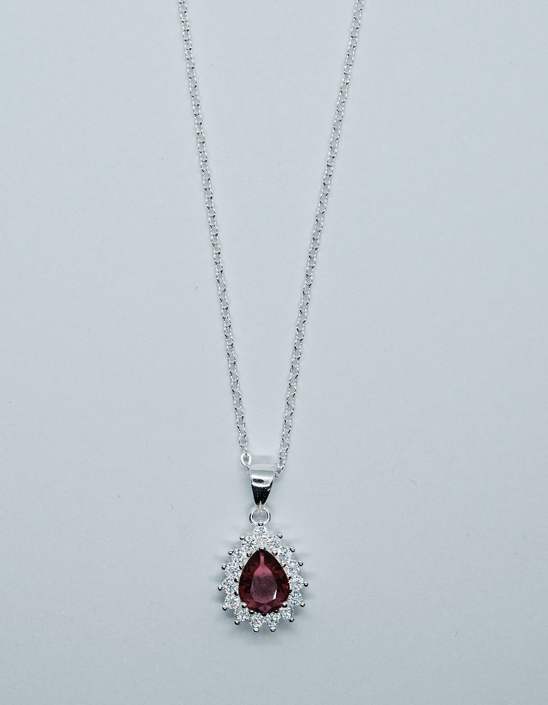 Silver Necklace Pear Red Cubic Zirconia