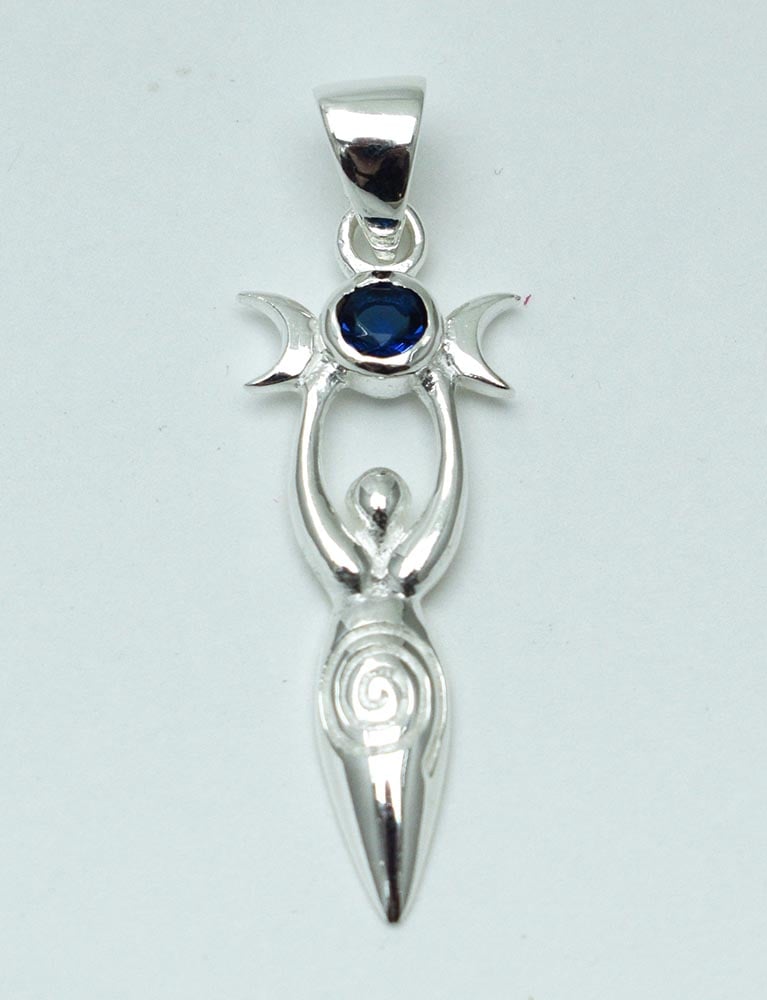 Silver Pendant 3 Moon Goddess Blue Stone 3.5cm