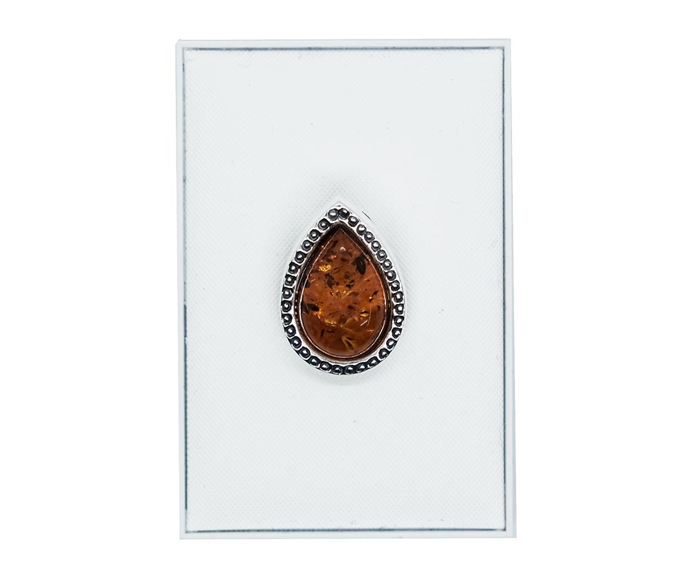 Silver Pendant Amber Teardrop Shape L 1Inch