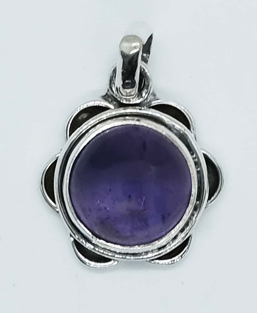 Silver Pendant Amethyst Cabochon 10×10 mm